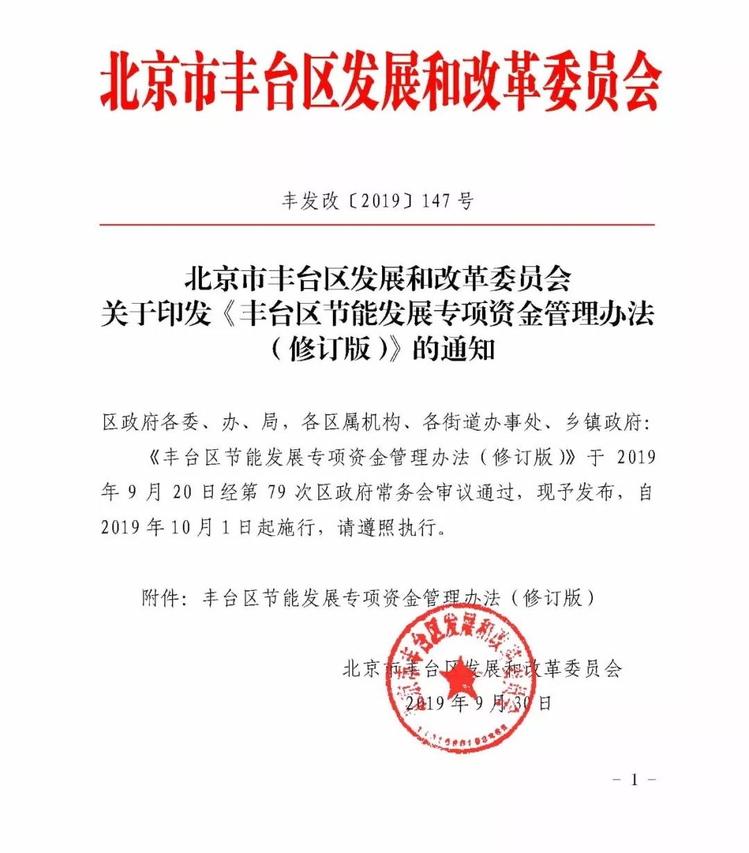 北京市豐臺區(qū)***發(fā)布關于印發(fā)《豐臺區(qū)節(jié)能發(fā)展專項資金管理辦法(修訂版)》的通知。