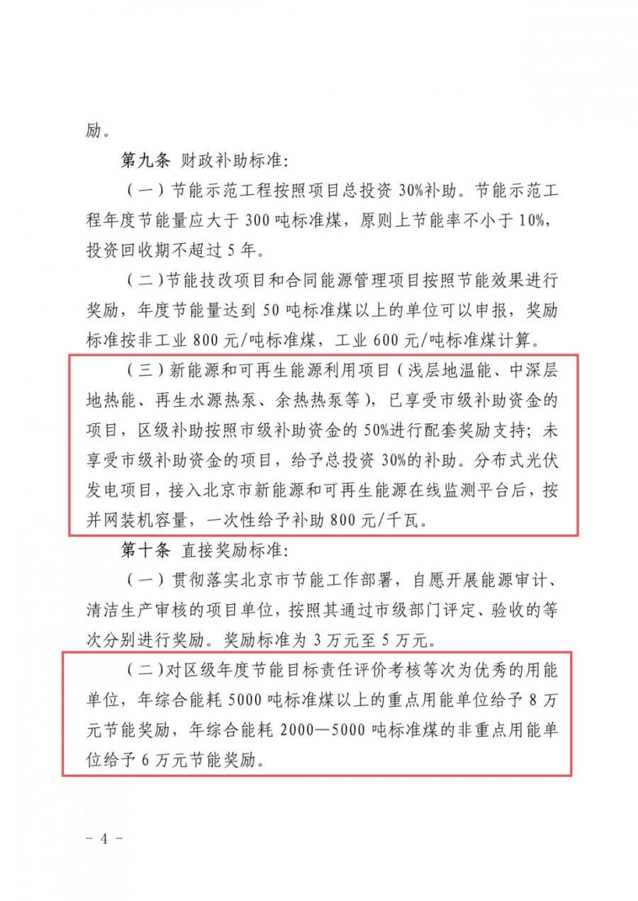 通知明確:新能源和可再生能源利用項目已享受市級補助資金的項目,區(qū)級補助按照市級補助資金的50%進行配套獎勵支持;未享受市級補助資金的項目,給予總投資30%的補助。分布式光伏發(fā)電項目,接入北京市新能源和可再生能源在線監(jiān)測平臺后,接并網(wǎng)裝機容量,一次性給予補助800元/千瓦。