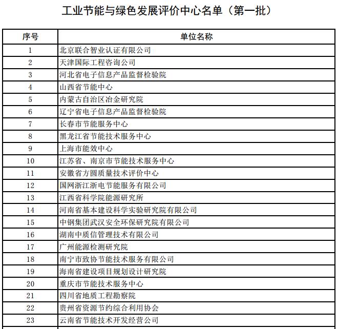 工業節能與綠色發展評價中心名單