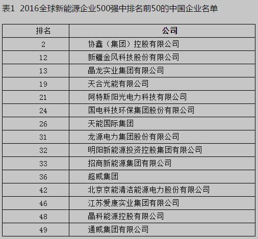 根據2016全球新能源企業500強名單,2016年500強上榜企業最低營業收入再邁上一個新臺階,達7.58億元人民幣。500強企業的總營業收入首次突破3萬億元人民幣,達到30666億元人民幣。與此同時,中國企業在企業競爭力、產業鏈完整性上全面、快速發展。