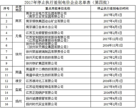 江蘇省決定對部分企業(yè)停止實(shí)施差別電價(jià)和懲罰性電價(jià)