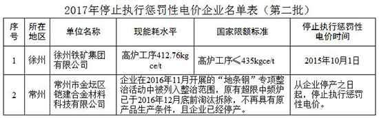2、2017年停止執(zhí)行懲罰性電價(jià)企業(yè)名單表(第二批)
