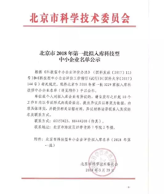近日,北京市科技技術委員會公示了北京市2018年第一批擬入庫科技型中小企業名單。其中,中科宇杰以其自主研發的核心技術實力,穩定的產品品質,良好的售后服務,誠實的公司信譽,成功榮獲該項榮譽!!