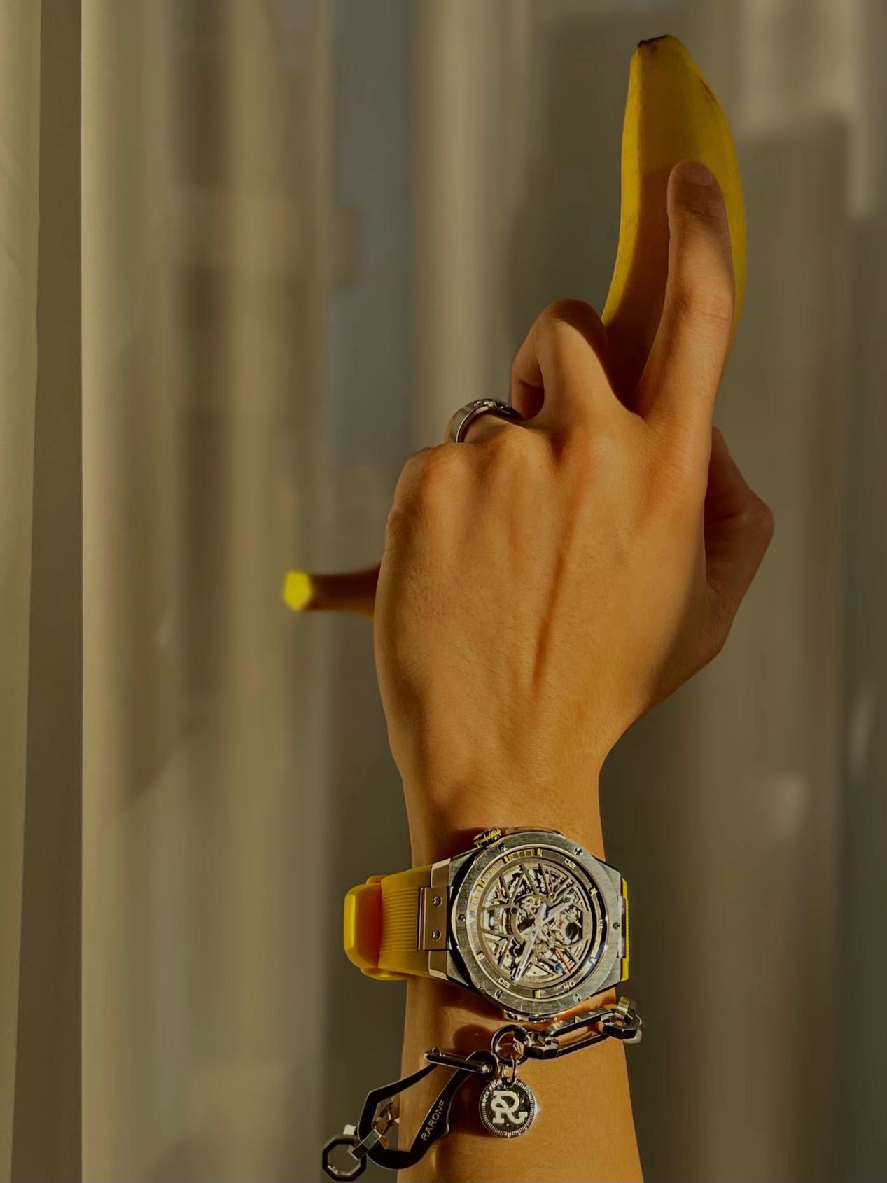 手表精致計時的鏤空表盤用不規則的幾何圖形設計,不僅勾勒城際的漫游形態,更賦予抽象的美學特征,搭配進口機械機心,驚喜遠不止此。品牌定制硅膠表帶,柔軟舒適可水洗,彈性且貼合腕間,可以隨意匹配不同類型手腕。