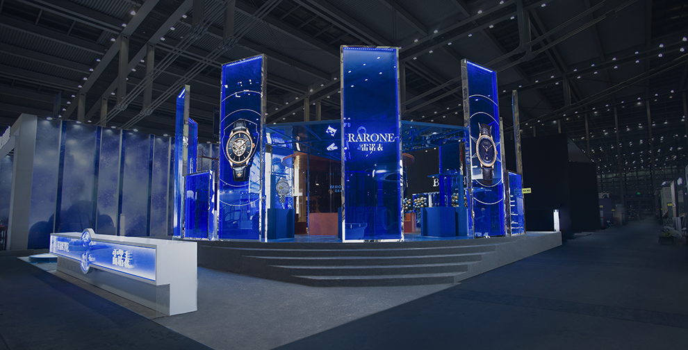 外墻8塊2米高藍(lán)色通透亞克力分別展示雷諾表自創(chuàng)立以來,從高端制表工藝、創(chuàng)新性用料到質(zhì)量標(biāo)準(zhǔn)認(rèn)證等多個(gè)維度的代表性表款。其中最具代表性的是,2012年孫紅雷先生親自參與設(shè)計(jì)的騎士系列,完美的演繹了雷諾表創(chuàng)新性與個(gè)性化的腕表設(shè)計(jì)。