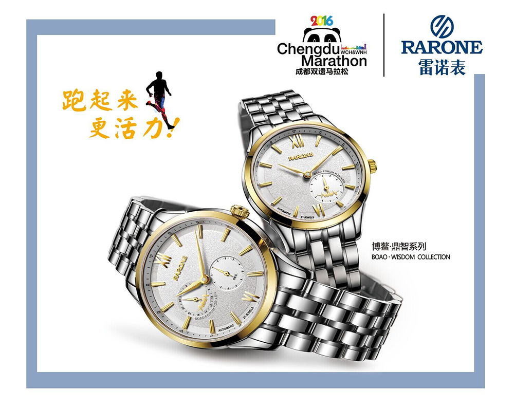 2016年3月27日,成都雙遺馬拉松活力開跑!作為成馬官方指定計時合作品牌,雷諾表見證了這場超過3萬人次參與的全民運動,全程為參賽選手提供計時服務。馬拉松的精神在四川濃厚人文氣息的襯托下,散發時代的光彩。與時間賽跑,挑戰自我、突破極限的運動精神也正是雷諾表所崇尚的品牌精神。