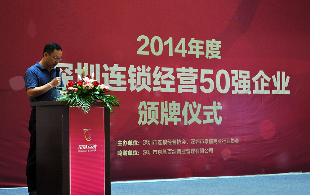 9月16日下午,2014年度“深圳連鎖經營50強企業”頒牌儀式在深圳市南山京基百納舉行。來自市經貿信委、各區經促(服)局等領導以及50強企業的代表出席了頒牌儀式。雷諾表憑借在零售系統的優秀經營和管理實力,再次榮獲2014年度“深圳連鎖經營50強”榮譽稱號。