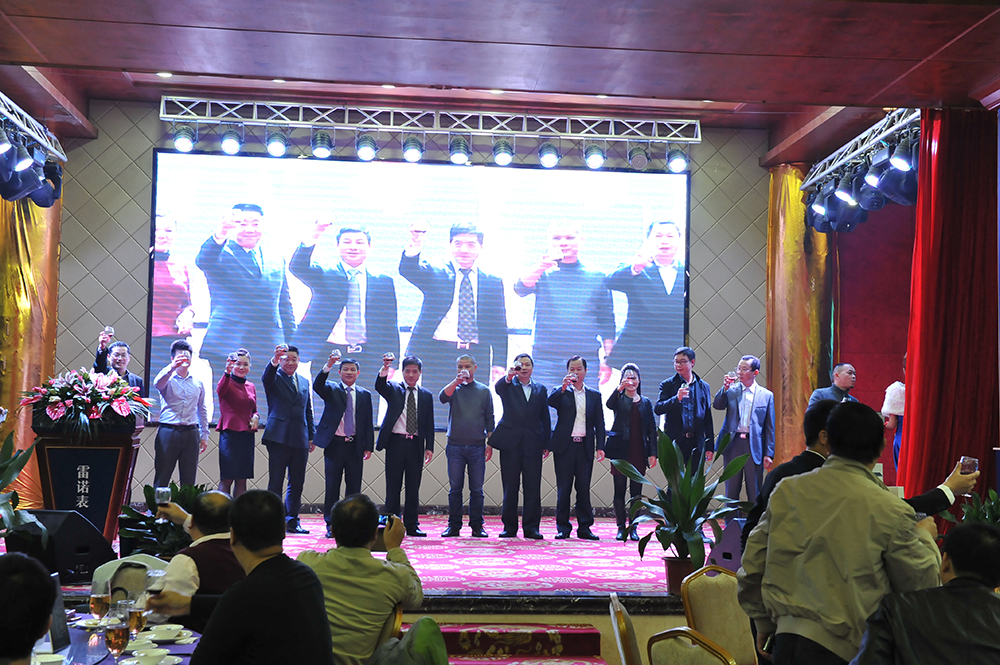 雷諾表業董事長詹西洲、總經理詹江洲、億寶來工業區總經理詹省洲攜集團總經辦全體領導祝酒