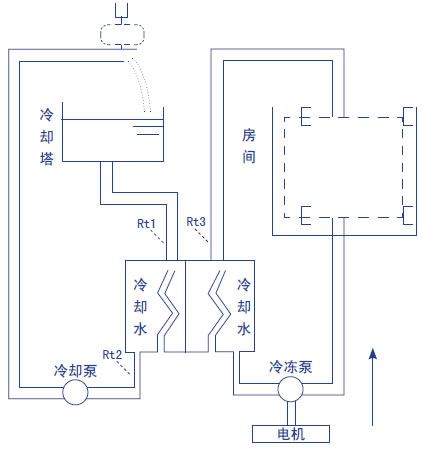 由冷凍泵及冷凍管道組成。從冷凍機組流出的冷凍水由冷凍泵加壓送入冷凍水管道,在室內(nèi)進行熱交換,帶走室內(nèi)的熱量,使室內(nèi)的溫度下降。